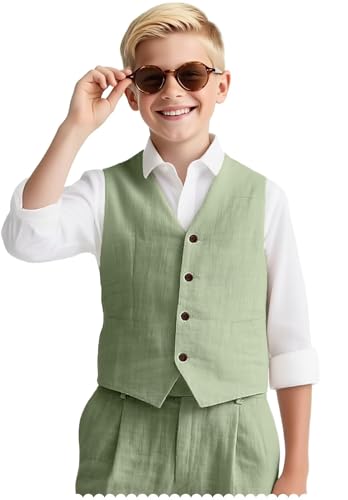 Kids Vest for Boys Summer Casual Linen Vest for Beach Wedding Outfit Sleeveless Boy Tuxedo Waistcoat 4