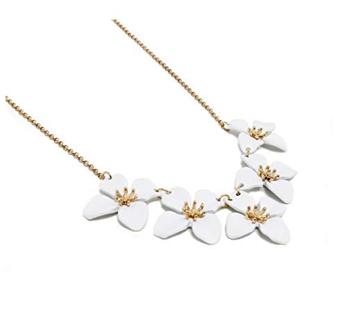 Material: MetalMetal type: BrassBack Finding: HoopGem type: Not available【Brand】: POMINA ✦ PROUDLY AMERICAN OWNED ✦ American owned and operated company! Please search POMINA on Amazon for more of our designs!【Elegant and Versatile Design】 This floral bib necklace features five beautifully crafted white soft silicone flowers on a gold-tone chain. Whether paired with jeans or a formal dress, it adds a charming, feminine touch to any outfit.【Adjustable for the Perfect Fit】 Measures 17 inches with a 3-inch extender to fit various necklines and body types. Each flower is about 2 cm wide—just the right size to be eye-catching yet delicate.【Quality Materials, Skin-Friendly Finish】 Crafted from durable zinc alloy and finished with coated soft silicone. Nickel-free and lead-free, suitable for most skin types. Designed to maintain its shine and beauty over time.【Gift-Ready Packaging】 Delivered in a high-quality fabric pouch, this necklace makes an ideal gift for birthdays, Mother’s Day, Valentine’s Day, or weddings. A great pick for moms, daughters, girlfriends, and bridesmaids.【Customer-Approved Style】 Loved by buyers for its style, comfort, and value. Many have purchased it more than once. Add it to your collection or gift it with confidence—it’s a proven customer favorite. Perfect for everyday use. excellent materials and excellent craftsmanship ensure long-lasting durability.