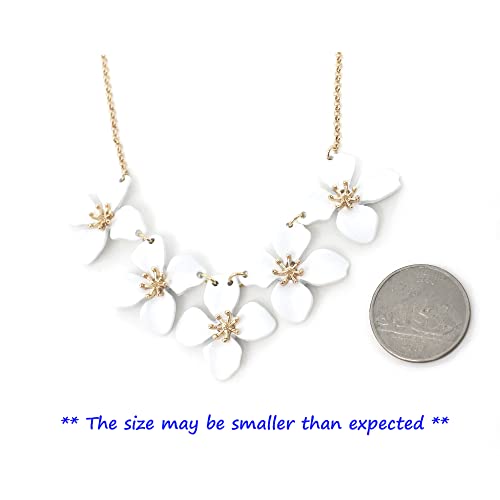 POMINA White Flower Statement Necklace for Women, Floral Bib Collar Necklace with Adjustable Chain, Flower Earrings, Elegant Costume Jewelry for Weddings, Gifts for Women
