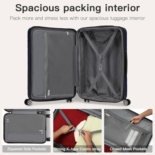 Kono 24 Inch Expandable Spinner Luggage with Wheels Hardshell Medium Checked Suitcase TSA Lock Navy 7