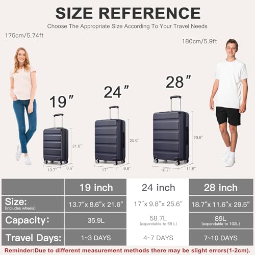 Kono 24 Inch Expandable Spinner Luggage with Wheels Hardshell Medium Checked Suitcase TSA Lock Navy 6