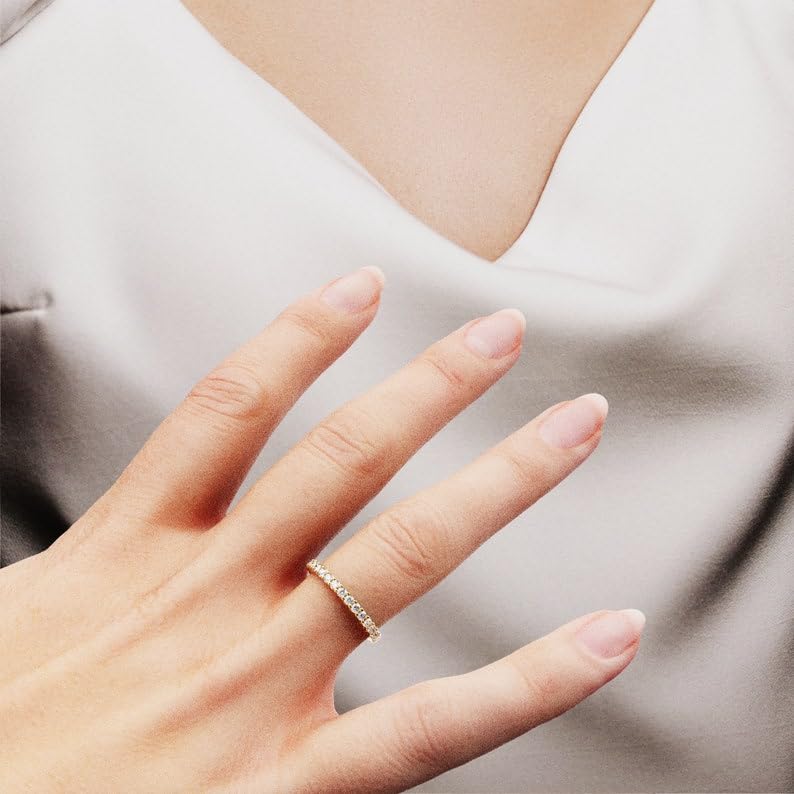 More information about 2mm Full Eternity Diamond Ring for Women, Solid Gold Stacking Band, Yellow/White/Rose Gold, Delicate Matching Wedding Band, Perfect Stackable Band