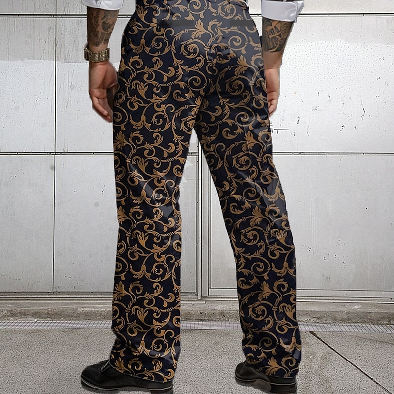 Men's Floral Paisley Ethnic Dress Pants Mid Waist Business Casual Formal Wedding Dailywear Zipper Pocket Straight Leg Trousers Summer Spring Fall 3D Print Pink Red Purple 11