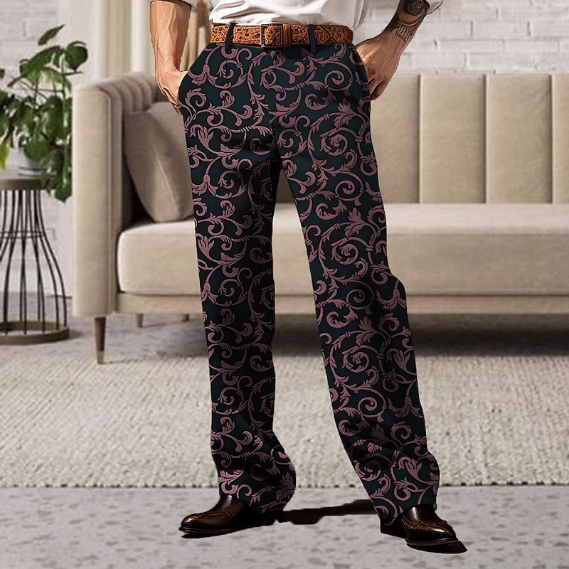Men's Floral Paisley Ethnic Dress Pants Mid Waist Business Casual Formal Wedding Dailywear Zipper Pocket Straight Leg Trousers Summer Spring Fall 3D Print Pink Red Purple 7