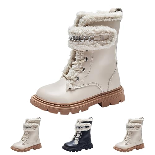 IWIHMIV Girls Riding Boots Winter Warm Mid Calf Boots Non Slip Thick Soled Leather High Top Booties 6