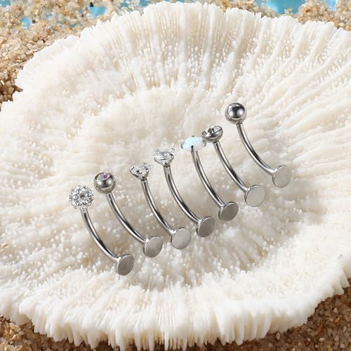 • Versatile Pack of Stylish Belly Button Ring------This set includes 7 unique floating belly button rings, featuring CZ, opal, heart, and ball designs. Mix and match to create a new look every day, giving you a stylish and fun way to express yourself with various styles and novel designs.