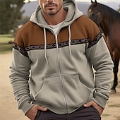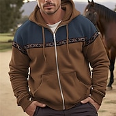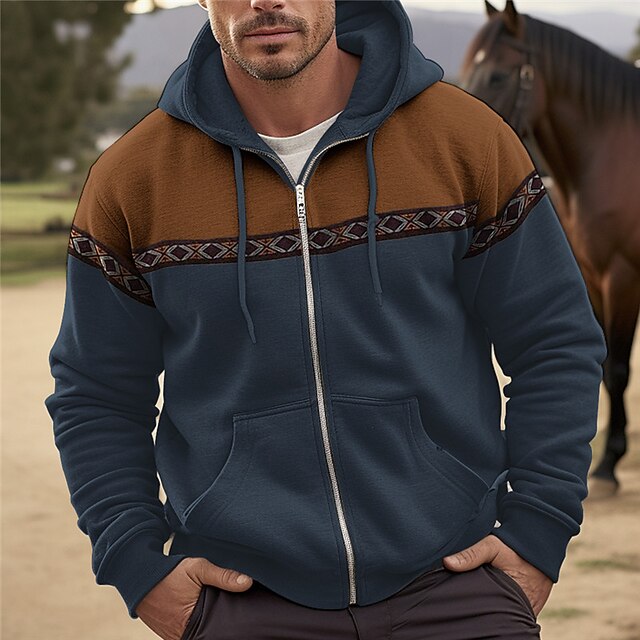 More information about Men's Full Zip Hoodie Zip Up Hoodie Black Navy Blue Brown Beige Hooded Color Block Tribal Zip Up Sports & Outdoor Daily Holiday Polyester Streetwear Cool Ethnic Spring & Fall Clothing Apparel Hoodies