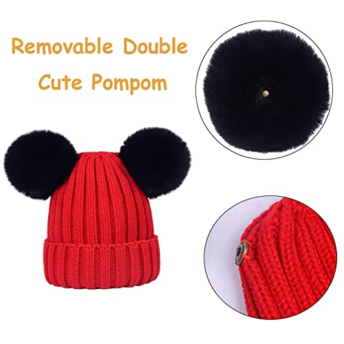 • 【Double Pom Poms Design】-- The kids winter beanie is designed with double pom poms, it makes the beanie look cute. The feelce lined beanie hat is attached with double solid color yarn poms. Blow pom poms to make them fluffy when you receive the hat.