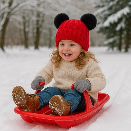 Toddler Winter Knit Hat Upgrade Fleece Lined Pompom Ears Beanies Cap for Boys Girls 3-12 Years 5