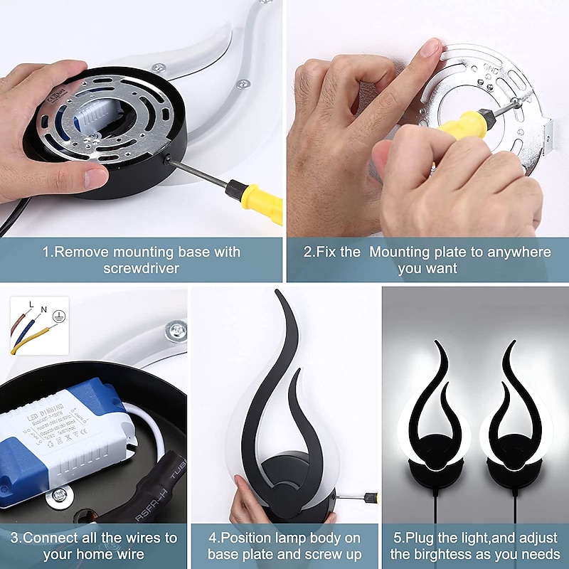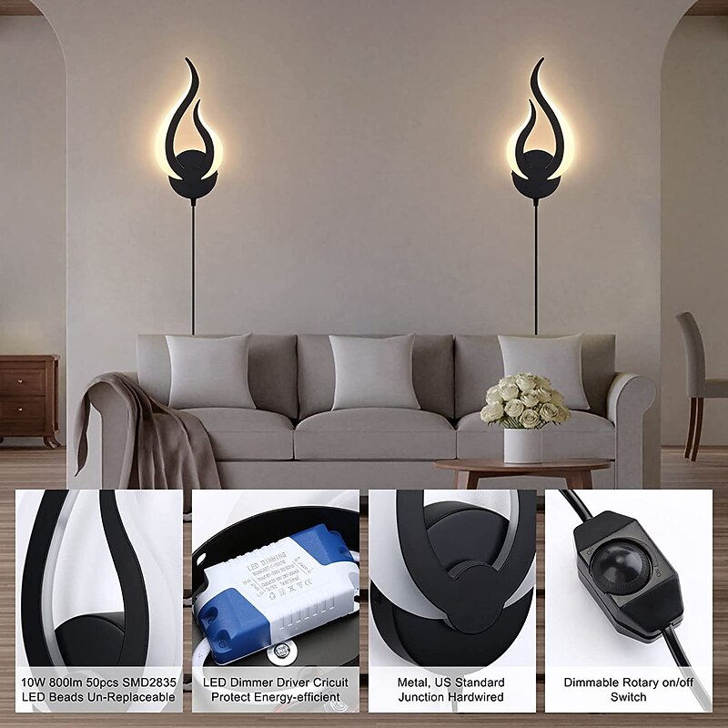 More information about Plug in Wall Lamp 1pc 2pcs Dimmable LED Wall Lamp 10W Modern Indoor Wall Lamp Acrylic Aall Lamp with 6ft (about 1.8m) Plug Cable Suitable for Living Room Bedroom and Stair AC110V AC220V