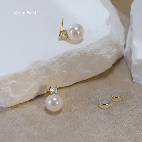 • Elegant Design: CZ Diamond Pearl Stud Earrings,These post pearl earrings feature a timeless and dainty design with lustrous 925 sterling silver and high-quality shell pearl studs in sizes 6mm, 8mm, or 10mm.Available in gold or silver finishes, these earrings can be dressed up or down for any occasion, from casual wear to formal events.