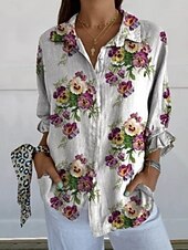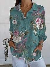 More information about Women's Blouse Floral Daily Stylish Long Sleeve Shirt Collar Regular Tops Daily Holiday Buttons Print White Blue Green Summer