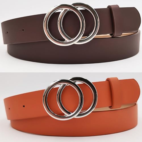 Women's Double O-Ring Belt Soft Faux Leather Belt Perfect Match with Your Jeans and Dresses 1