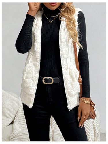 HOT ! Verdusa Women's Fuzzy Fleece Vest Zip Up Sleeveless Hooded Jacket with Pockets