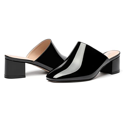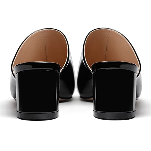MODENCOCO Women's Fashion Patent Square Toe Slip On Dress Dating Chunky Low Heel Pumps Comfortable Shoes 2 Inch 3