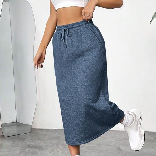 Lmdudan Drawstring Skirt for Women 2025 Fall A Line Midi Skirts with Pockets Trendy Lightweight Flowy Beach Maxi Skirts 2