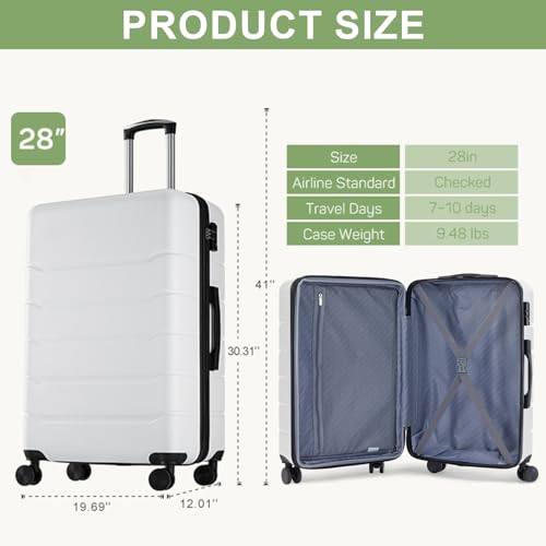 Carry On Luggage, 28 Inch Carry On Luggage with Wheels, Hard Shell Suitcases with TSA Lock, Expandable Luggage Durable Suitcase for Travel, Move House or Business Trip, White 5