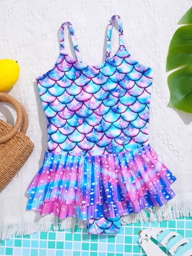Girls Swim Dress One Piece Swimwear Fish Scale Printed Mermaid Swimsuit Summer Seaside Beachwear 6
