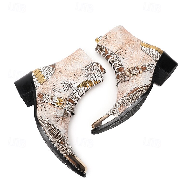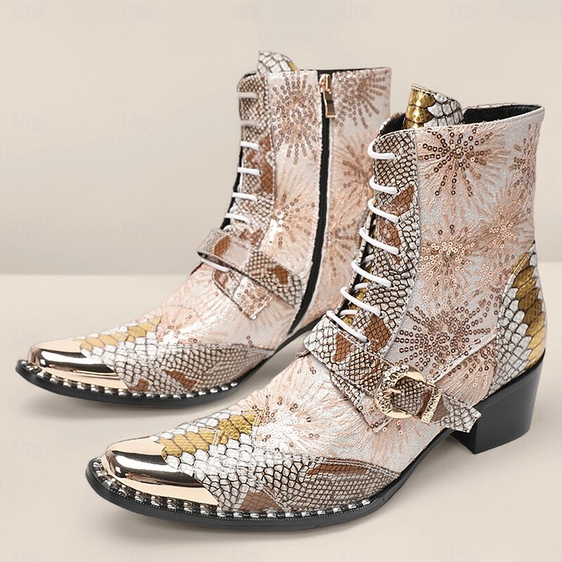 More information about Men's Metallic Snake Print Western Boots with Studded Detailing – Fashionable and Bold Design for Festivals, Parties and Unique Occasions