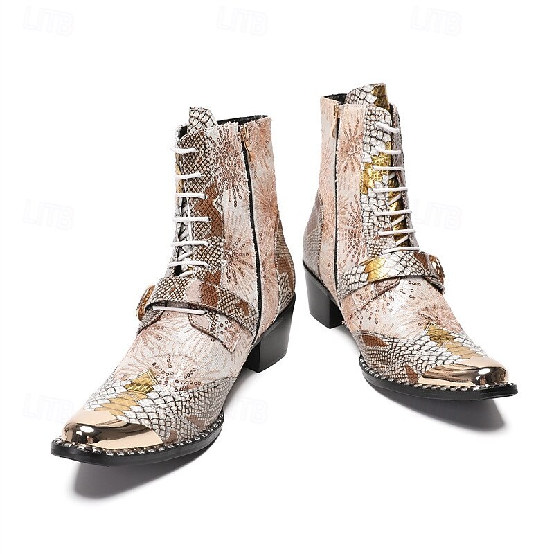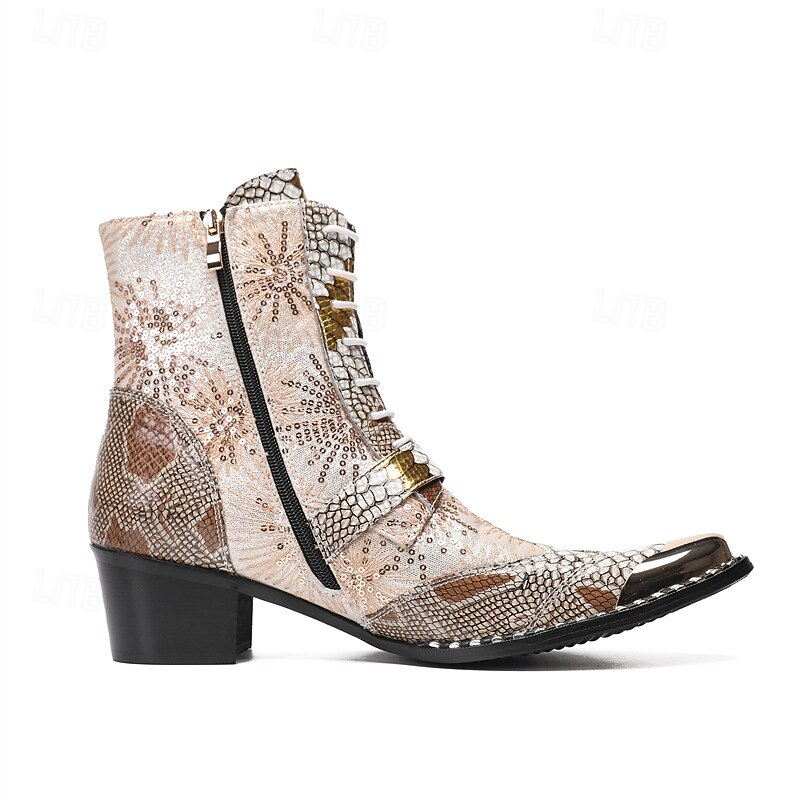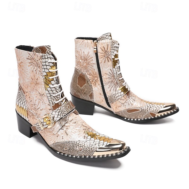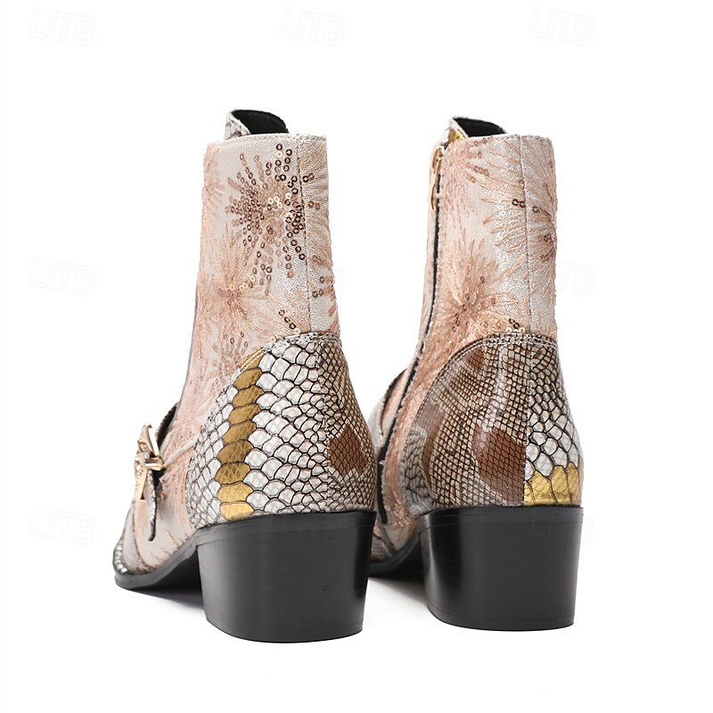Men's Metallic Snake Print Western Boots with Studded Detailing – Fashionable and Bold Design for Festivals, Parties and Unique Occasions 1
