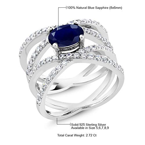 Gem Stone King Criss Cross Engagement Ring For Women | 8X6MM Oval Gemstone Birthstone | 925 Sterling Silver | Fine Jewelry Gifts for Her Mom Women Wife | Available In Size 5, 6, 7, 8, 9 1