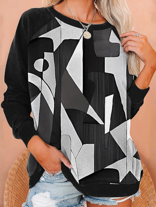 Women's Sweatshirts Graphic Geometric Fashion Casual Long Sleeve Crew Neck Regular Tops Casual Print White Red Blue Purple Green Summer Spring Fall 22