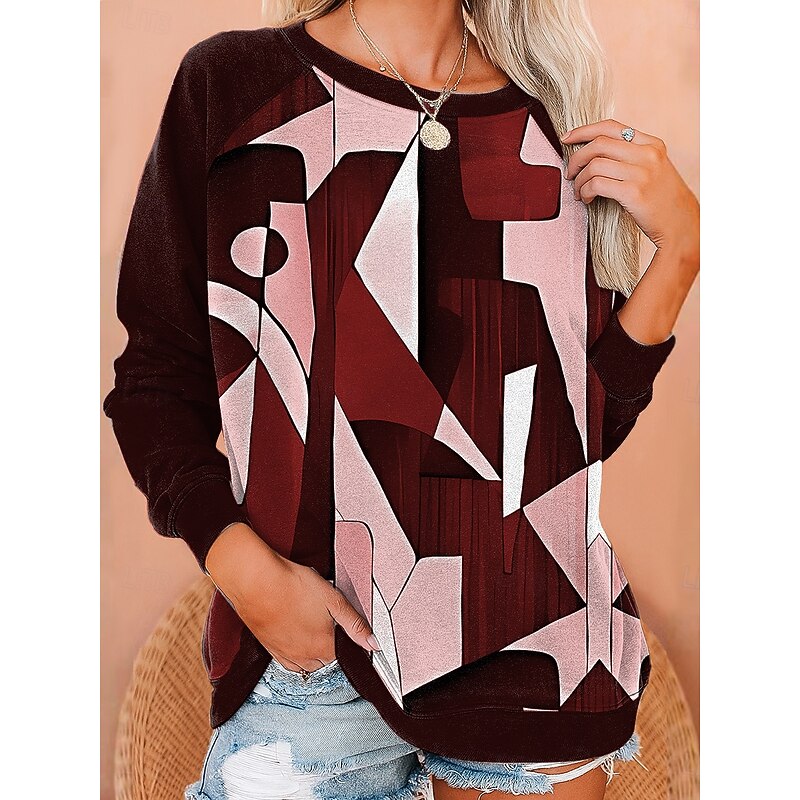 More information about Women's Sweatshirts Graphic Geometric Fashion Casual Long Sleeve Crew Neck Regular Tops Casual Print White Red Blue Purple Green Summer Spring Fall