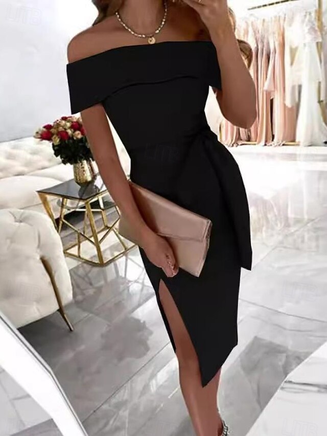 HOT ! Women's Midi Dress Black Dress Graduation Dress Cocktail Dress Formal Dress Casual Street Date Regular Fit Plain Short Sleeve Off Shoulder Black Pink Red Summer Spring