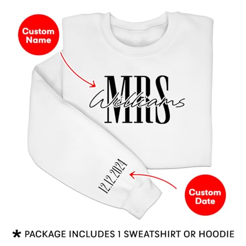 More information about Personalized Mr. And Mrs. Last Name Sweatshirt Custom Last Name with Aniversary Date on Sleeve Matching Sweatshirts For Couples White