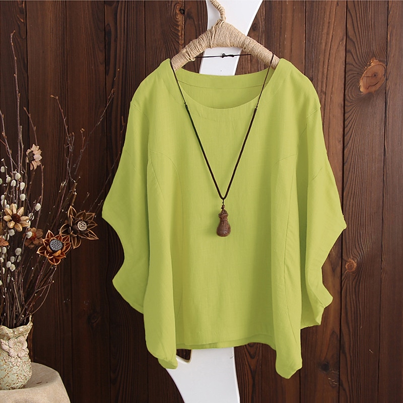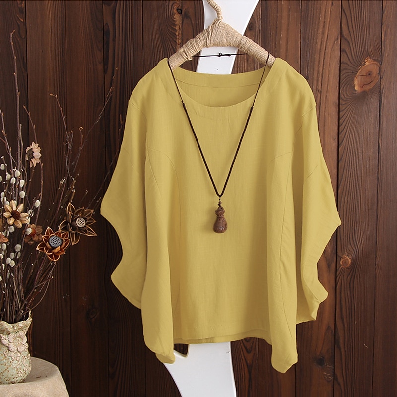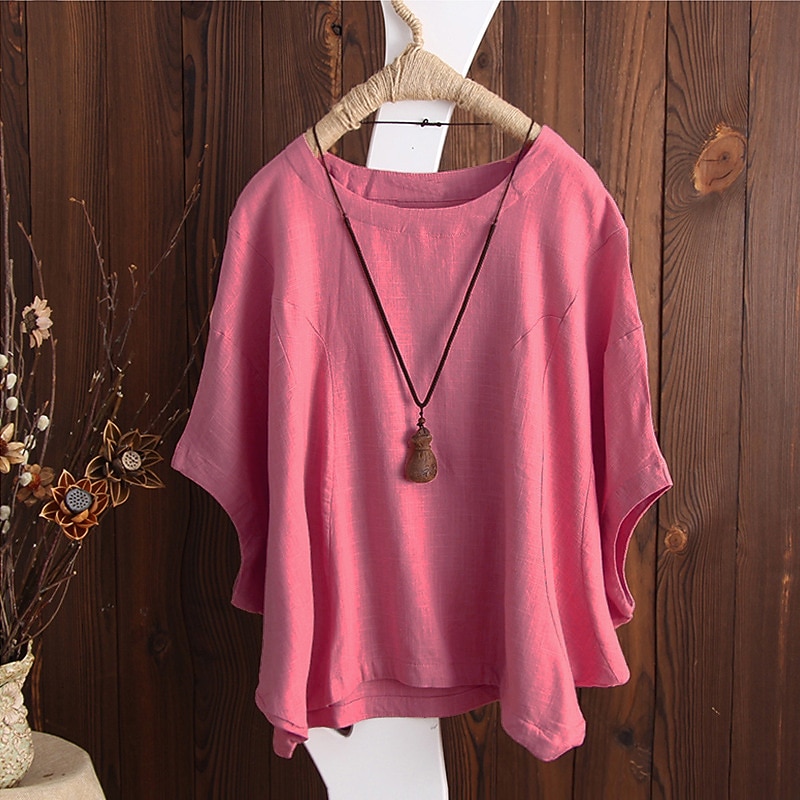 More information about Women's T Shirt Blouse Plain Vintage Streetwear Half Sleeve Crewneck Regular Tops Daily Going out Weekend Black White Yellow Pink Red Spring Fall