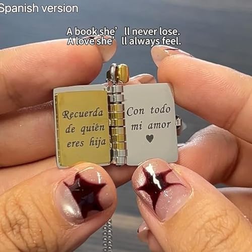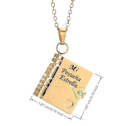Spanish My Little Star Book Necklace for Daughter Son, Mi Pequeña Estrella Openable Pendant with 6 Engraved Pages, Adjustable Jewelry Charm from Mom, Birthday Graduation Gift