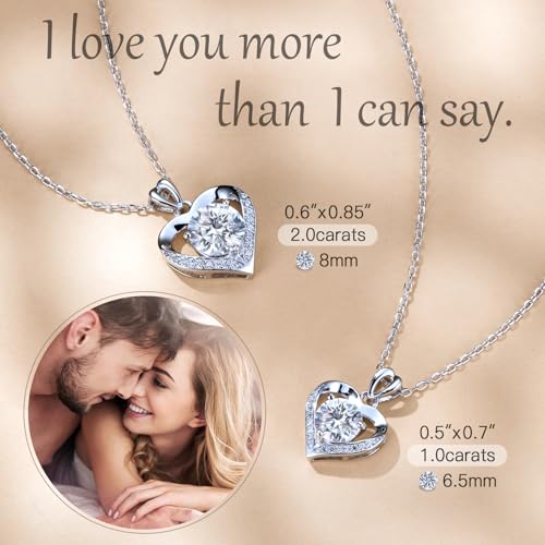 Heart Necklace for Women, 925 Sterling Silver Diamond Pendant Necklaces for Women Engraved with 'I LOVE YOU', Jewelry Gifts Anniversary Birthday Gift for Mom Wife Women Gifts for Her 1