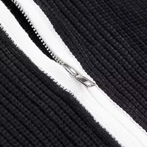 More information about Stand Collar Double Zipper Cardigan Casual Cable Knitted Stand Collar Sweaters Mens Full Zip Long Sleeve Knitted Sweater
