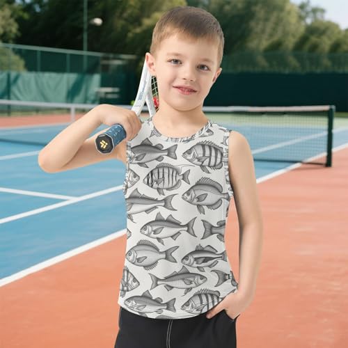 J JOYSAY Black White Fish Boys Tank Top Sleeveless Muscle Shirts Quick Dry Sport Workout Active Kids T-Shirts 3-15T 5