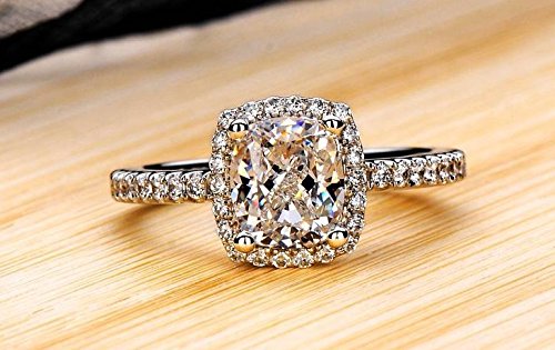 HOT ! Cutedoumiao Cushion 3ct CZ Engagement Rings for Women Cubic Zirconia Promise Halo Engagement Ring 925 Sterling Silver Solitaire Engagement Ring (7)