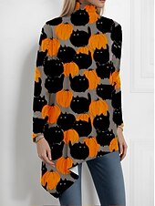 More information about Halloween Women's Blouse Floral Graphic Skull Elegant Active Stylish Long Sleeve Turtleneck High Neck Long Tops Party Evening Wear Daily Going out Asymmetric Hem Orange Summer Spring Fall Winter