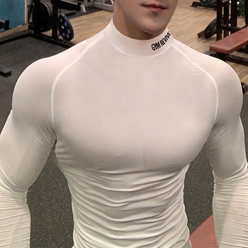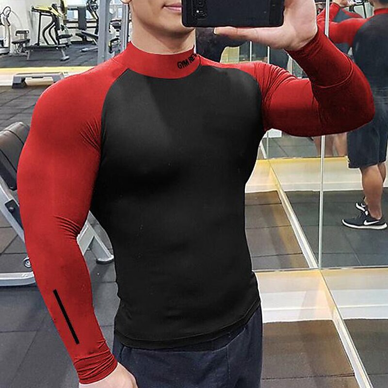Men's T shirt Tee Gym Shirt Compression Shirt Training Shirt Workout Shirts Stand Collar Long Sleeve Training Sports & Outdoor Fitness Casual Daily Gym Quick dry High Stretch Sweat wicking Soft Color 1