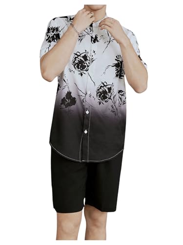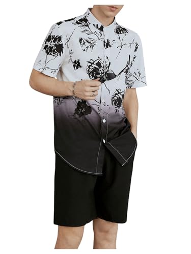 HOT ! OYOANGLE Men's Casual Short Sleeve Tropical Print Collared Button Down Hawaiian Shirts