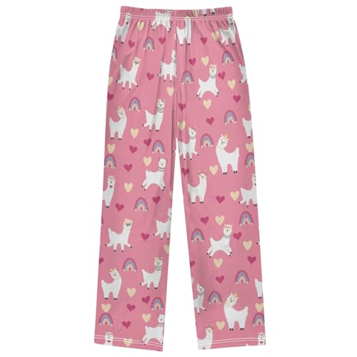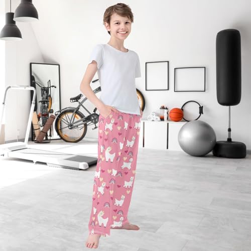 Boy's Pj Pants Rainbow Heart Happy Alpaca Pink Lounge Bottoms Elastic Waist Kids Joggers with Pockets Size 6-14 7