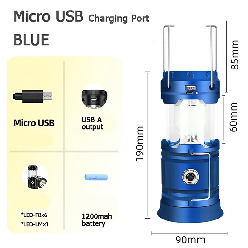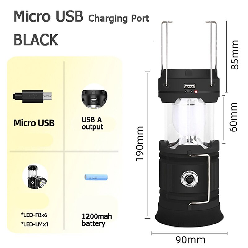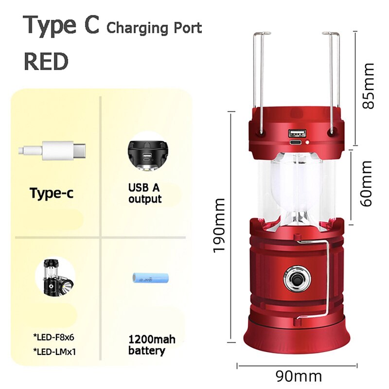 Solar LED Camping Lantern Waterproof Rechargeable Tent Lamp Portable Lanterns Emergency Lights Market Lamp Energy Saving Bulb 19