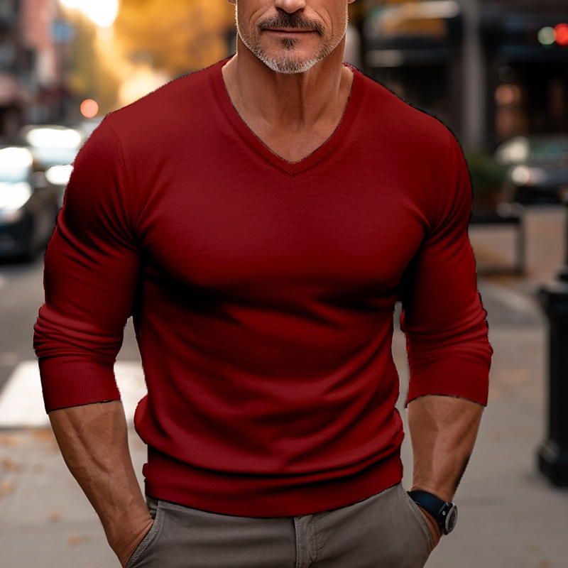 Highlights - Ideal choice for the winter season - Made from high-quality knit fabric - Designed with long sleeves for added warmth - Specifically designed for men - Features a stylish V neckline - Crafted with a trendy ribbed knit style