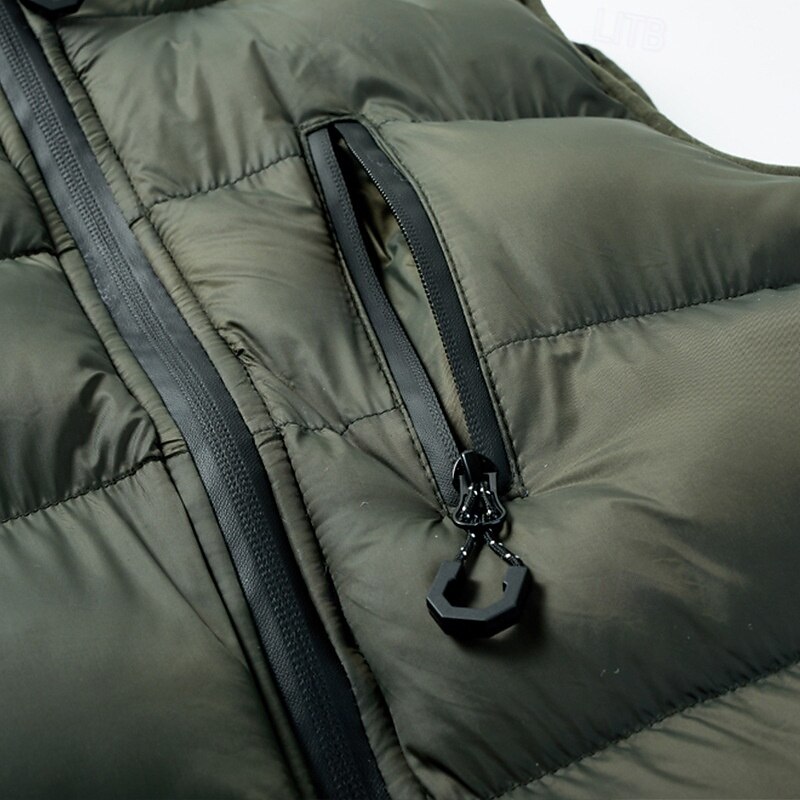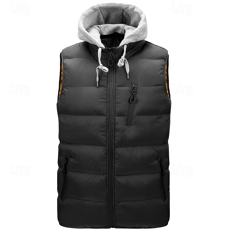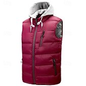 Highlights [Fabric]: Crafted from high-quality polyester, this men's puffer vest features a durable and water-resistant outer layer, making it ideal for windy and rainy conditions. The quilted design offers excellent insulation, ensuring warmth and comfort during cooler seasons. [Fit]: Designed with a regular fit, this sleeveless vest offers flexibility and ease of movement, perfect for layering over any outfit. [Design Highlights]: The vest includes a full-length zipper for easy wear and removal, as well as multiple zippered pockets providing secure storage options for your essentials. It also features a hood lined with soft fleece for added warmth, complete with adjustable drawstrings for a personalized fit. [Occasions]: This versatile vest is perfect for a range of activities, from casual daily wear to vacation outings and going out. Its stylish yet functional design makes it suitable for various occasions, ensuring you look fashionable while staying warm. [Size Range]: Available in a range of sizes from XS to L, catering to different body types and preferences. Available colors include Green, Black, Red, Dark Blue, and Yellow, allowing you to choose according to your style.