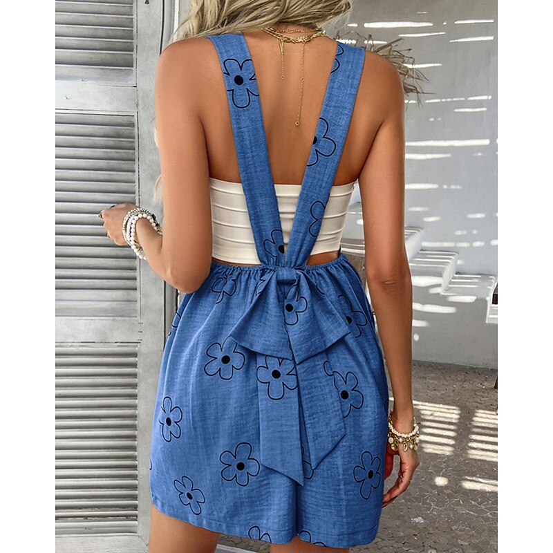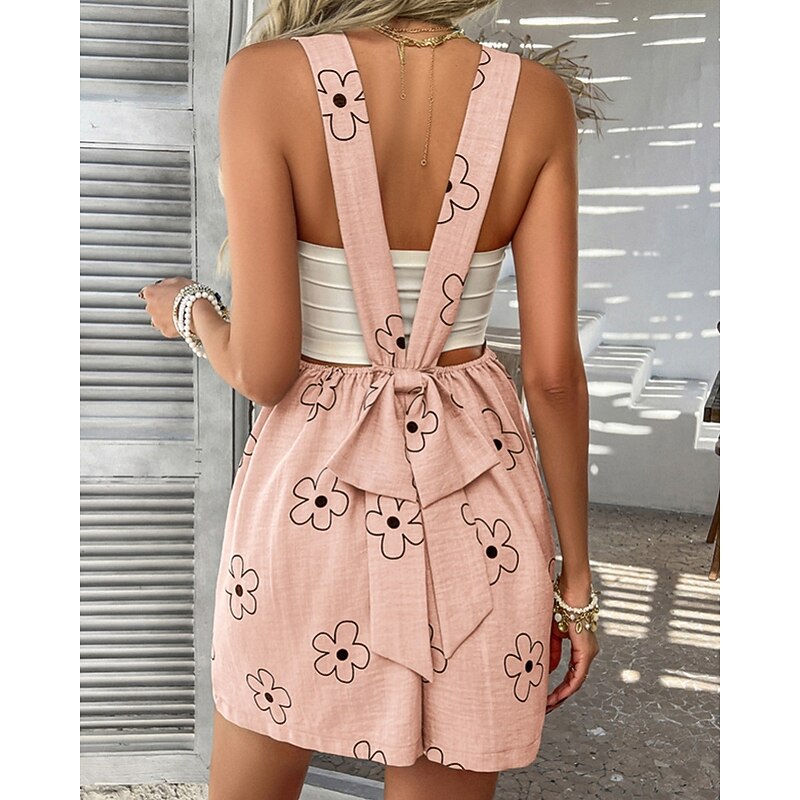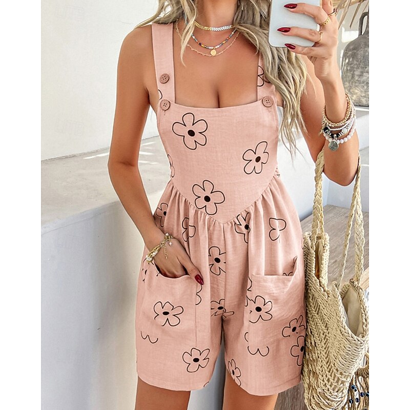 More information about Women's Normal Romper Streetwear Floral Sleeveless U Neck Pocket Print Daily Holiday Regular Fit Pink Royal Blue Khaki Summer
