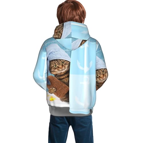 Funny Cat Taking a Bath Kids Pullover Hoodies Boys Sweatshirts Girls Athletic Clothes with Pocket 6