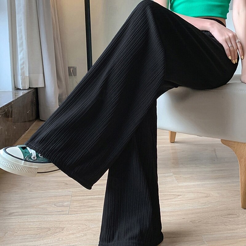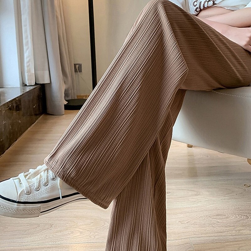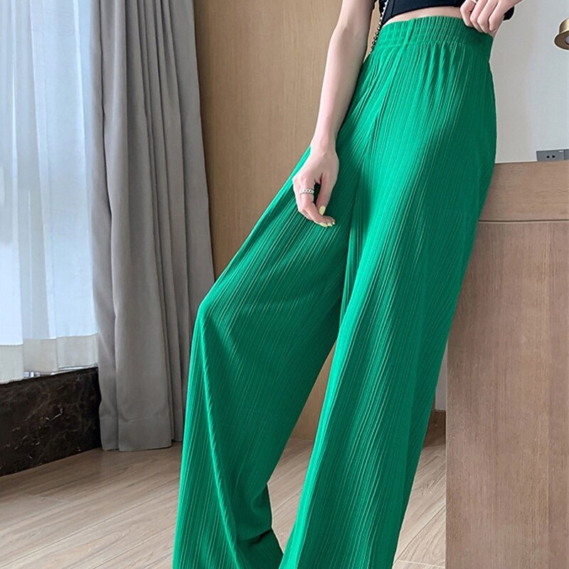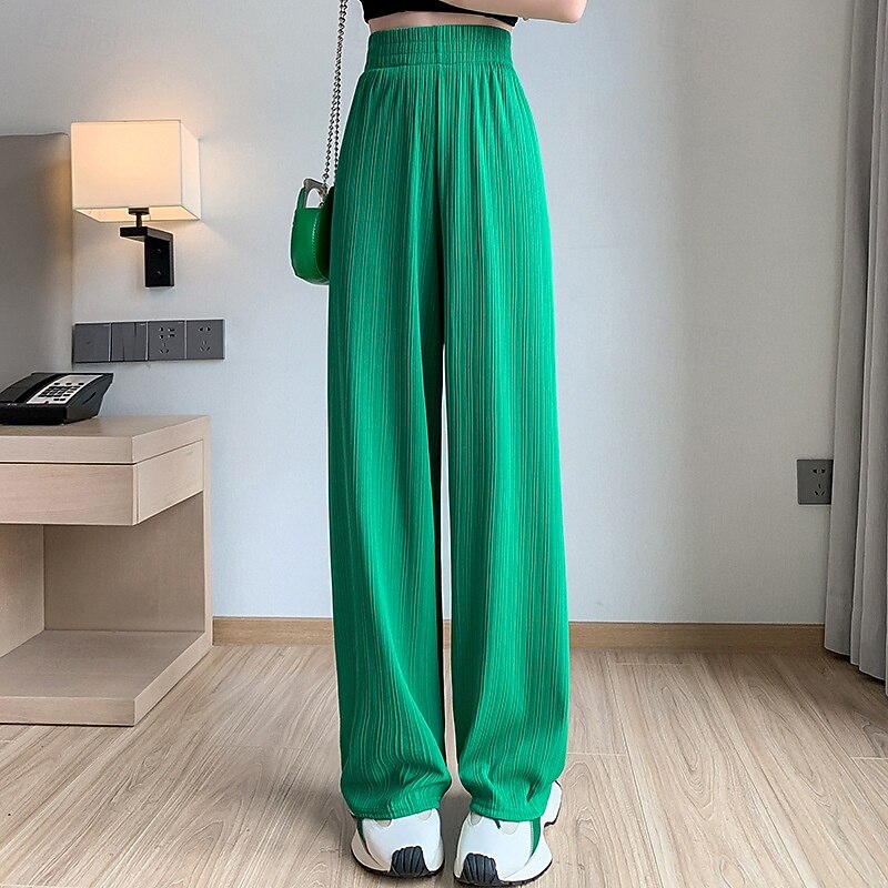 More information about Women's Wide Leg Pants Trousers Palazzo Pants Fashion Streetwear Full Length High Waist Plain Elastic Waist Breathability Comfortable Street Daily Wear Going out Black Green Khaki Beige Spring Fall