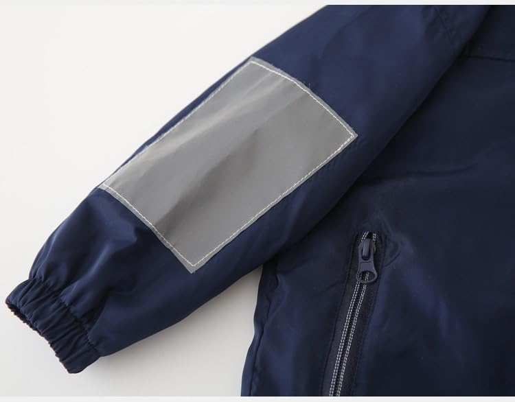 • [Design]: Navy Hooded Outwear. toddler jacket with two front Side Pockets decoration, your babies can put his hands or little things in; with Zipper Closure design, this boy jacket is easy to put on &off.