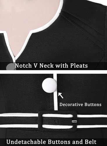• Style: Notch V Neckline with pleats, 3/4 Sleeve, Undetachable Belt with holes to adjust, Decorative Buttons and Piping, a Concealed Back Zipper, Knee Length, Bodycon Silhouette with a Back Slit for easy walking.