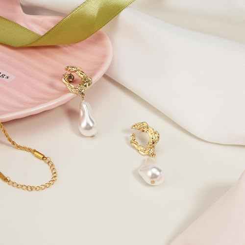 • Material: Gold pearl earrings for women are made of brass, 14k gold plated, and the carefully selected irregularly imitation pearls, which are shiny and smooth, give you a better wearing experience