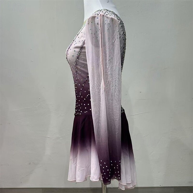 More information about Figure Skating Dress Women's Girls' Ice Skating Dress Pruple Black Patchwork High Elasticity Training Competition Skating Wear Classic Crystal / Rhinestone Long Sleeve Ice Skating Figure Skating