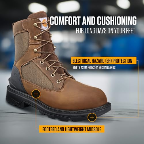 Carhartt Ironwood Waterproof Work Boots for Men - 8-inch, Reinforced Oil-Tanned Leather with Breathable Membrane, EH & Slip-Resistant Outsoles 5